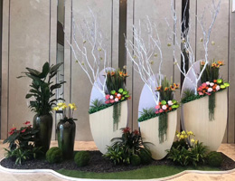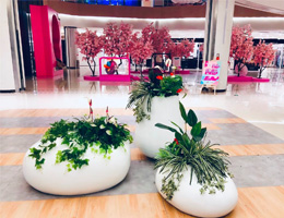 室内的植物租摆环境比较复杂。需要分为不同的区域,比如商场的走廊、电梯、大厅和商店门口等,在不同的季节结合商场的促销活动等,设计不同的方案。