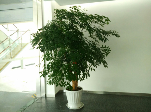 3、最后是修剪,护理的时候,护理员对每棵植物应仔细检查,对出现黄叶残叶,树型不对称,有陡长枝的要及时修剪。对于叶片枯黄面积超过1/3以上的应整片剪除,枯黄面积超过1/3以下者,应用剪刀顺着叶形将枯黄部分剪除,注意保留叶形,不可一刀切过。